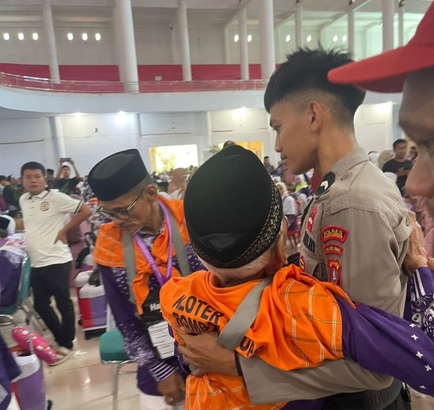 Reading: Aksi Heroik, Polisi Gendong CJH Lansia Mengikuti Pelepasan Pemberangkatan Kloter 11 Polman