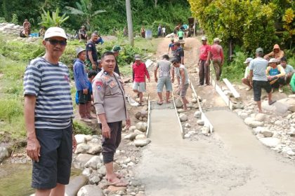 Bhabinkamtibmas Tapua Laksanakan Gotong Royong Perbaiki Jalan Rusak