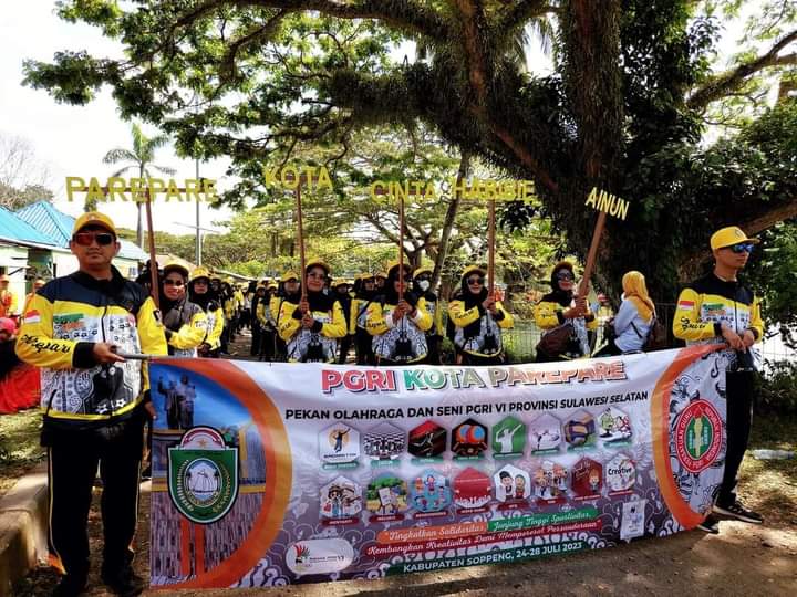 Porseni VI PGRI Sulsel di Soppeng, Parepare Turunkan Ribuan Peserta Defile Ajak ke Kota Cinta