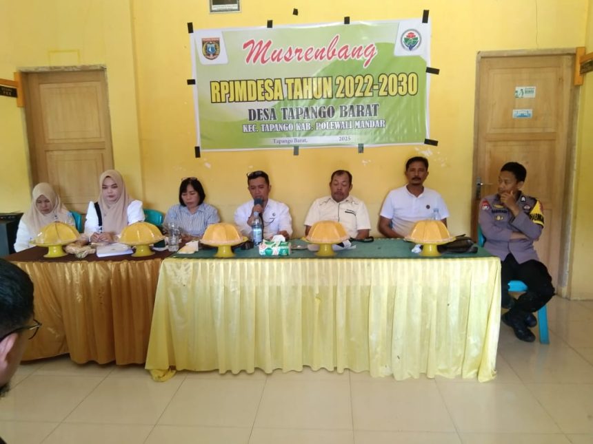 POLMAN –Bhabinkamtibmas Desa Tapango Barat Polsek Tapango Polres Polman, Brigpol Sabriadi, menghadiri kegiatan Musyawarah Desa (RPJMDes) tentang Perencanaan Pembangunan Jangka Menengah Desa Tapango Barat Tahun 2022–2030. Kegiatan ini dilaksanakan di Aula Kantor Desa Tapango Barat, Kecamatan Tapango, Kabupaten Polewali Mandar, pada Rabu (15/10/2025).