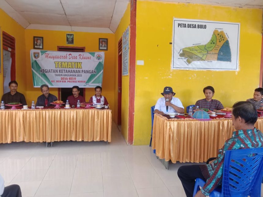 Musyawarah ini membahas dua agenda utama, yakni program ketahanan pangan tahun 2025 dan pembentukan pengurus Koperasi Merah Putih Bulo.