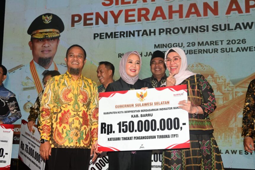 Berhasil Tekan Angka Pengangguran, Pemkab Barru Terima Penghargaan dari Gubernur Provinsi Sulsel