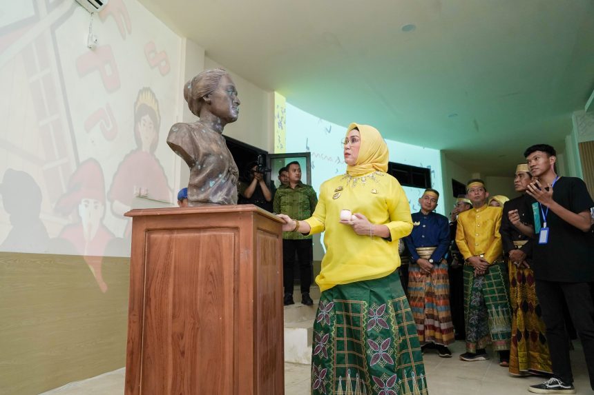 Dalam suasana yang hangat dan penuh kekhidmatan, Bupati Andi Ina melangkah memasuki ruang pamer, berhenti sejenak di depan patung dada Colliq Pujie.