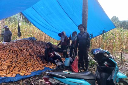 Dukung Ketahanan Pangan Nasional, Bhabinkamtibmas Polsek Binuang Polres Polman Panen Raya Jagung 3 Ton
