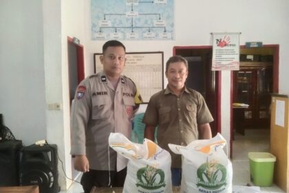 POLMAN – Bhabinkamtibmas Desa Kunyi, Aipda Amiruddin, memantau langsung penyaluran Bantuan Pangan…