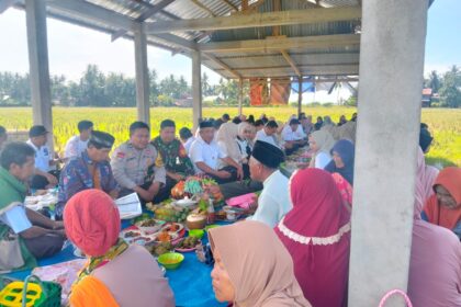POLMAN – Bhabinkamtibmas Desa Nepo, Aiptu Rahman, menghadiri kegiatan rapat turun sawah…