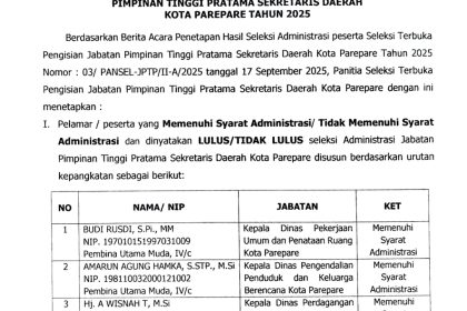 Empat Kandidat Sekda Parepare Lolos Verifikasi, Persaingan Makin Ketat Menuju Tahap Selanjutnya