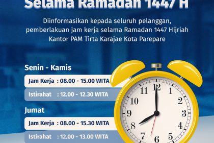 PAM Tirta Karajae Parepare Sesuaikan Jam Pelayanan Selama Ramadan 1447 H