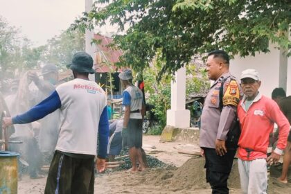Bhabinkamtibmas Polsek Wonomulyo Dengan Kades Monitoring Pembangunan Infrastruktur Desa Nepo