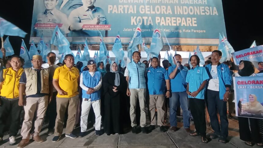 Konsolidasi ratusan kader dan simpatisan Gelora Parepare ini dihadiri langsung bakal calon Wali Kota dan wakil Wali Kota Parepare Erna Rasyid Taufan (Erat) dengan Rahmat Sjamsu Alam (Bersalam) didampingi juru bicara Kaharuddin Kadir dan sejumlah tim Erat Bersalam.