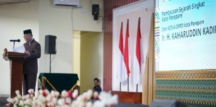 PAREPARE, koridor.id – Ketua Dewan Perwkilan Rakyat Daerah (DPRD) Kota Parepare, Ir. Kaharuddin Kadir, M.Si. tampil membacakan sejarah singkat lahirnya Kota Parepare pada puncak peringatan hari ulang tahun ke-64 Parepare, di Auditorium IAIN Parepare. Ahad, 18 Februari 2024.