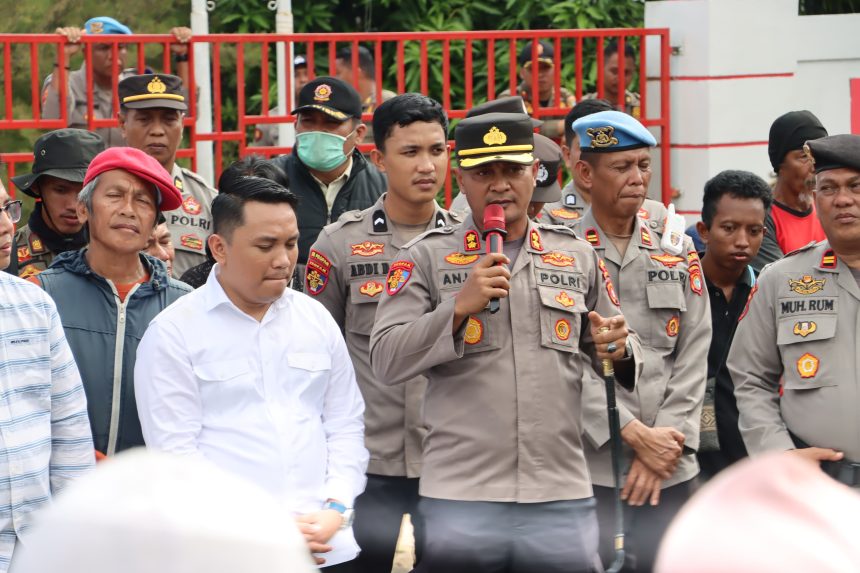 POLMAN – Kepala Kepolisian Resor (Kapolres) Polewali Mandar Akbp Anjar Purwoko, S.H.,S.I.K.,M.H. memimpin langsung jalannya pengamanan aksi unjuk rasa yang digelar oleh Serikat Mahasiswa Rakyat Polman di 2 (dua) Titik Aksi di Kabupaten Polewali Mandar, Provinsi Sulbar. Senin (01/09/25).
