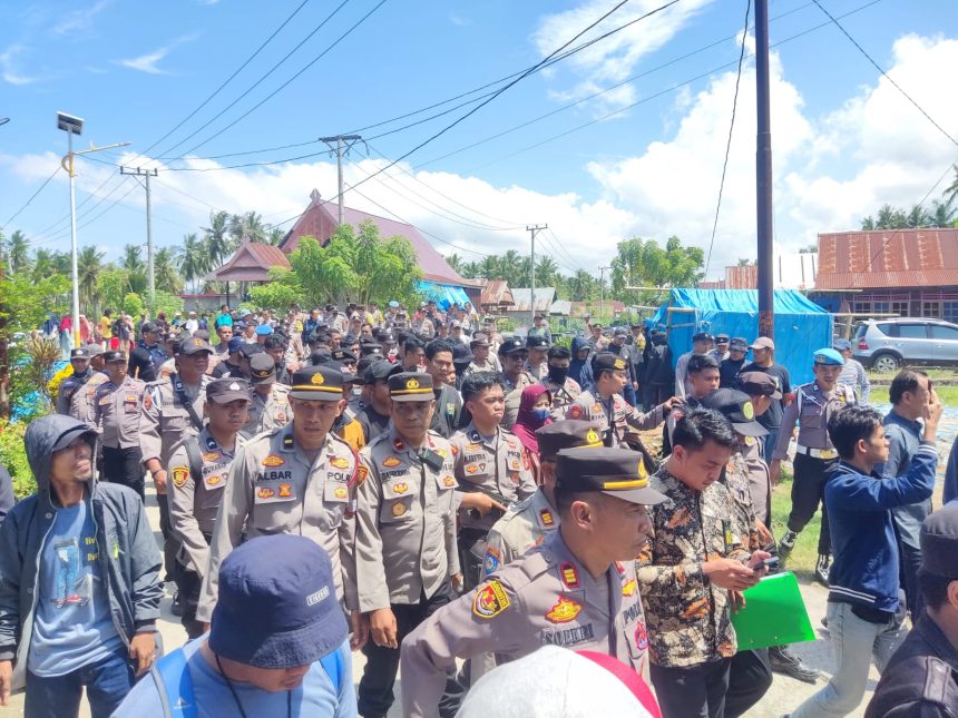 POLMAN – Kapolres Polewali Mandar (Polman), AKBP Anjar Purwoko di Dampingi Kabag Ops Polres Polman Kompol Najamuddin memimpin langsung pengamanan kegiatan pemeriksaan setempat (PS) yang dilakukan oleh pihak pengadilan terkait sengketa lahan di wilayah Dusun Passairang Desa Parappe Kecamatan Campalagian Kabupaten Polman. Kamis (08/05/25)