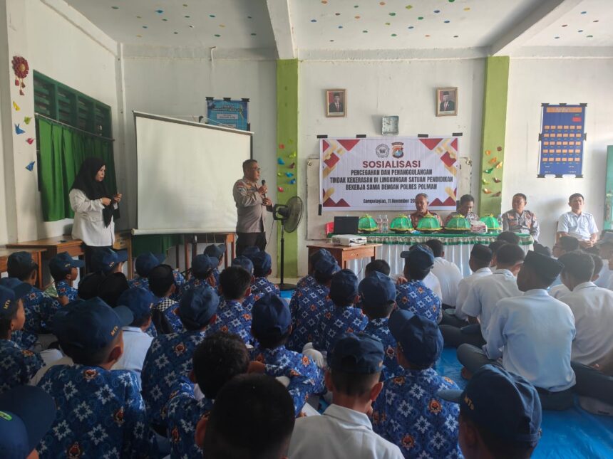 POLMAN, KORIDOR.ID – Dalam rangka mendukung upaya pencegahan kekerasan di lingkungan pendidikan, Kepala Satuan Binmas (Kasat Binmas) Polres Polres Polman Akp Muhammad Tauhid menggelar sosialisasi terkait pencegahan dan penanggulangan kekerasan di satuan pendidikan Di Yayasan Perguruan Islam MA Pergis Desa Bonde Kec. Campalagian Kab. Polman. Senin (11/11/24)