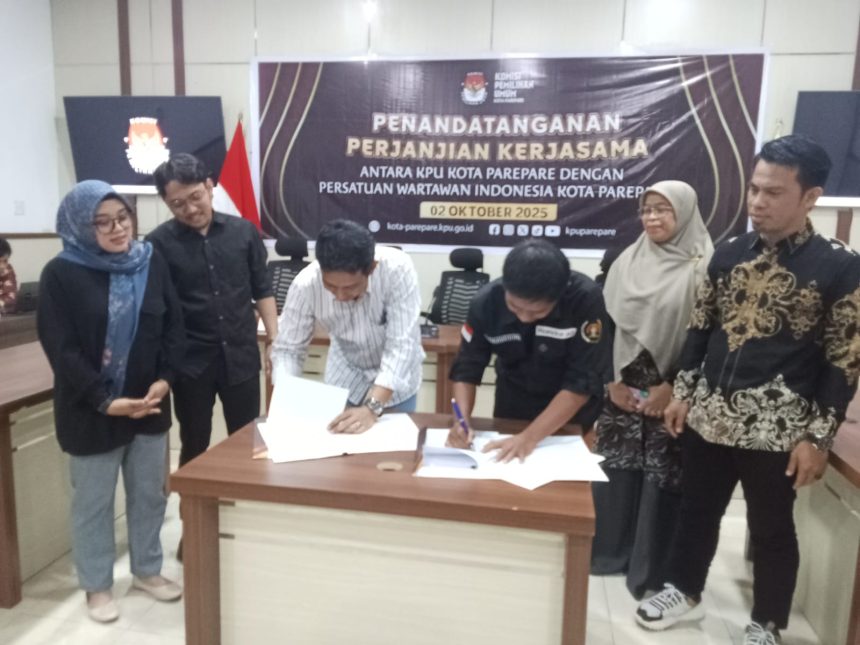 Koridor.id, PAREPARE – Komisi Pemilihan Umum (KPU) Kota Parepare bersama Persatuan Wartawan Indonesia (PWI) Parepare resmi menandatangani perjanjian kerjasama di Kantor KPU Parepare, Kamis (2/10/2025).