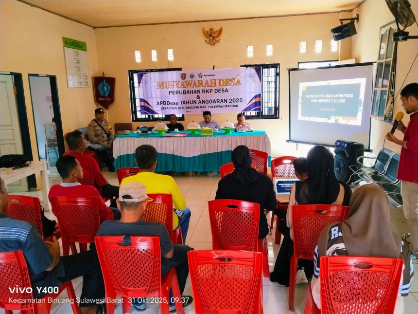 POLMAN – Bhabinkamtibmas Desa Paku Polsek Binuang Polres Polman, AIPDA Mansyur, menghadiri kegiatan Musyawarah Desa (Musdes) Perubahan Rencana Kerja Pemerintah Desa (RKPDes) dan Anggaran Pendapatan dan Belanja Desa (APBDes) Tahun…