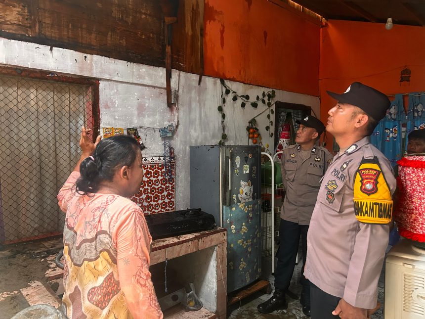 POLMAN – Personel Polsek Wonomulyo mendatangi lokasi kebakaran yang diduga dipicu kebocoran tabung gas LPG 3 kilogram di dapur rumah milik Basrah Wati (54), warga Dusun Nganjuk, Desa Sugihwaras, Kecamatan Wonomulyo, Kabupaten Polewali Mandar (Polman), Sabtu (30/08/2025).