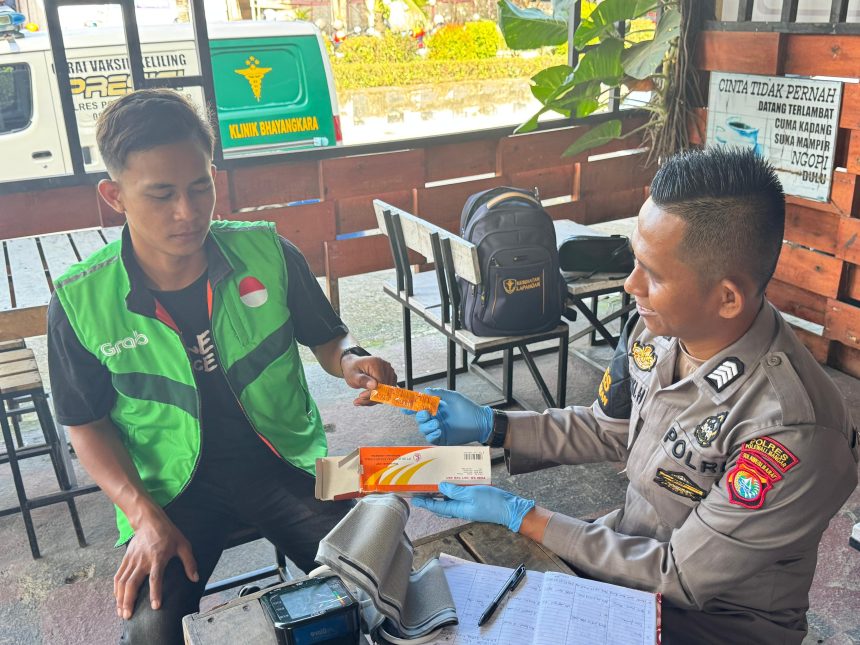 POLMAN – Dalam rangka menyambut Hari Ulang Tahun (HUT) Bhayangkara ke-79, Seksi Dokkes Polres Polewali Mandar (Polman) melaksanakan kegiatan bakti kesehatan kepada para pengemudi ojek online (ojol), di Café Purnama, Jalan Tamajarra Kelurahan Pekkabata Kecamatan Polewali Kabupaten Polman. Jumat (13/06/25)