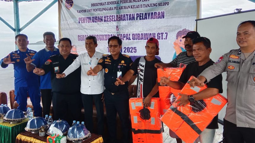 POLMAN – Satuan Polairud Polres Polman menghadiri kegiatan sosialisasi/penyuluhan keselamatan pelayaran serta gerai pengukuran kapal di bawah GT.7 yang diselenggarakan oleh UPTD Kantor Unit Penyelenggara Pelabuhan Kelas II Tanjung Silopo. di Dermaga Dusun Bajoe, Desa Rea, Kecamatan Binuang, Kabupaten Polewali Mandar. Rabu (10/09/25)