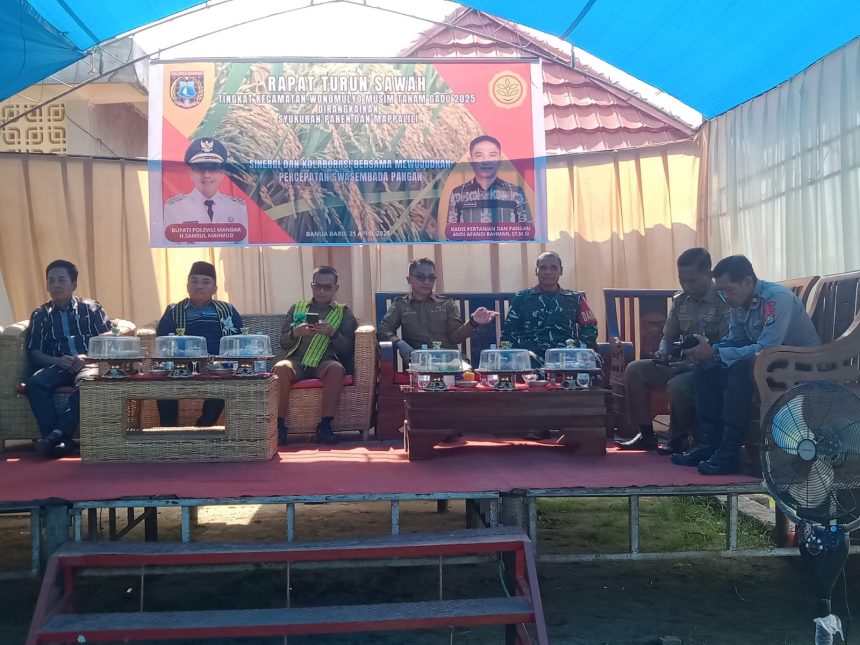 POLMAN – Dalam rangka mempererat sinergi antara kepolisian dan masyarakat, Panit II Binmas Polsek Wonomulyo Iptu Suryadi menghadiri acara syukuran turun sawah tingkat Kecamatan Wonomulyo yang diselenggarakan di Dusun 3 Desa Banua Baru pada Senin (21/04/25).