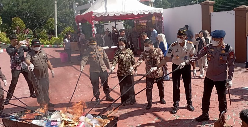Kegiatan pemusnahan barang bukti tersebut berlangsung tertib dan disaksikan oleh unsur Forkopimda, aparat penegak hukum, serta undangan terkait lainnya. (*)